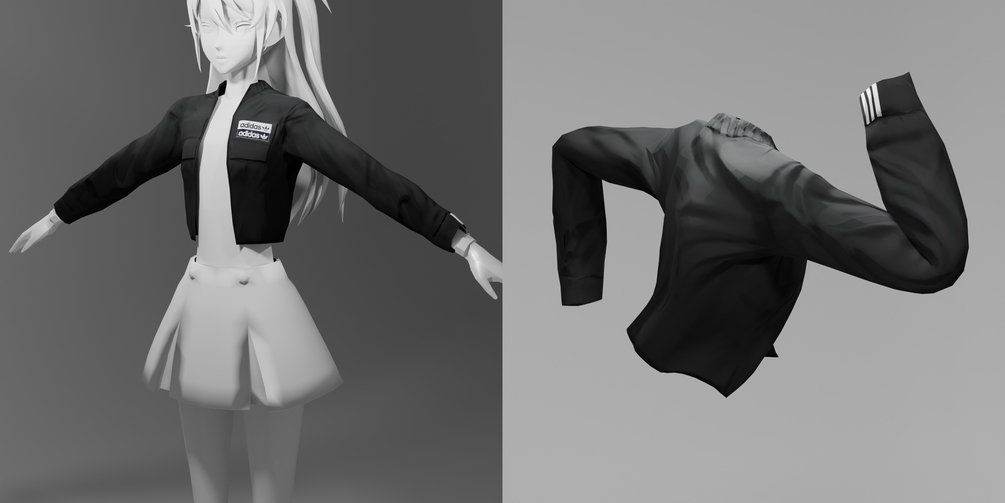 A simple, stylish Adidas crop jacket, ideal for female gendered avatars! I love wearing this jacket in my outfits irl, so I've made it wearable for VR too!~